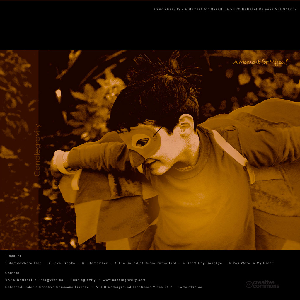 Candlegravity’s fourth release on the VKRS Netlabel “A Moment for Myself “ is a beautifully grafted piece of work with blends of electronica, downtempo, ambient beats and soundscapes. We highly recommend you take the time to find your own moment and enjoy this VKRS Netlabel release.