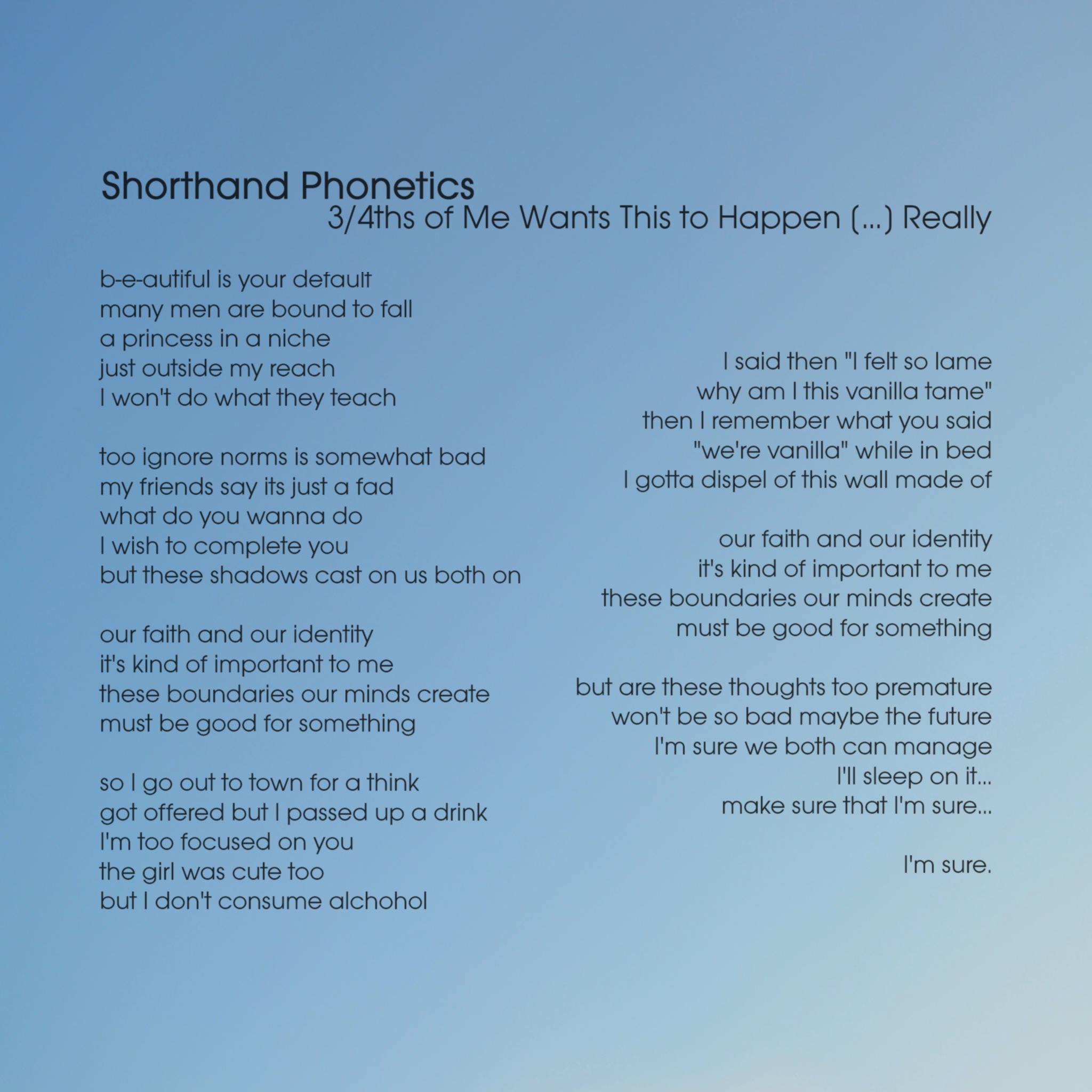 - 3 4ths of Me Wants This to Happen ReallyShorthand Phonetics