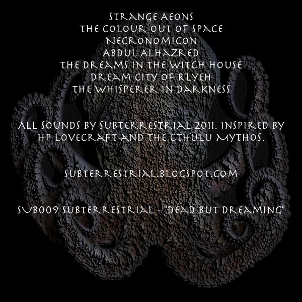 “Dead But Dreaming” is a dark ambient tribute to H.P. Lovecraft, a virtual soundtrack to the Cthulu Mythos. Creeping atmospheres inspired by the ancient nightmares portrayed in his fiction work.
