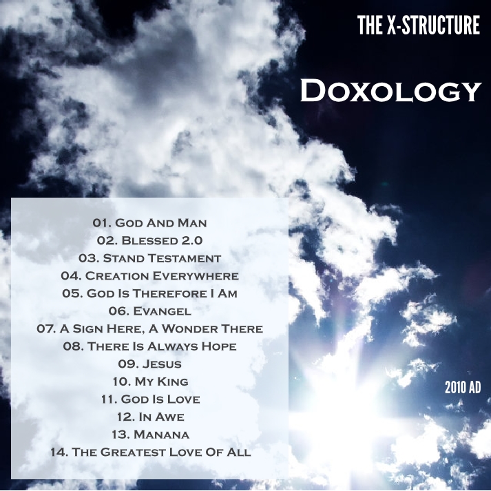 Released: 2010Album: 08DoxologyDoxology is an album of "modern-day hymns" performed by the virtual hands of The X-Structure. It is an expression of admiration and gratitude towards God. It is the continuing tale of the journey of a new found love. It is the continuing tale of the discoveries that are found when we come to know and believe that there is more to what is seen or felt. These songs are not just songs without meaning, these songs are songs of glory and wonder. This is our Doxology.Soli Deo Gloria!----------// Track listing01. God And Man02. Blessed 2.003. Stand Testament04. Creation Everywhere05. God Is Therefore I Am06. Evangel07. A Sign Here, A Wonder There08. There Is Always Hope09. Jesus10. My King11. God Is Love12. In Awe13. Manana14. The Greatest Love Of All// Release DateAugust 2010// External SourcesFront Cover Photo by Hubble Telescope -http://hubblesite.org/gallery/album/entire/pr1992017a/Back Cover Photo by alvinrock - http://alvinrock.deviantart.com/Cover designs by nightowl// Special Release InfoThis release forms part of an ongoing collaboration of "joint releases" between the Italian netlabel, 51beats, and the South African netlabel, Bushmen Records. Our goal is to strengthen our international bonds of mutual love for music in the netlabel scene and in turn to deliver our artists' music to a much wider audience. If you like the music then please feel free to share it with someone else around the world. Be sure to check out the other joint releases on our respective websites.// LabelBushmen Records - http://bushmenrecords.co.za/Release Number - bush1251beats - http://51beats.netRelease Number - [51bts#027]// LicenseLicensed under Creative Commons license: Attribution-Noncommercial-Share Alike 2.5 South Africa