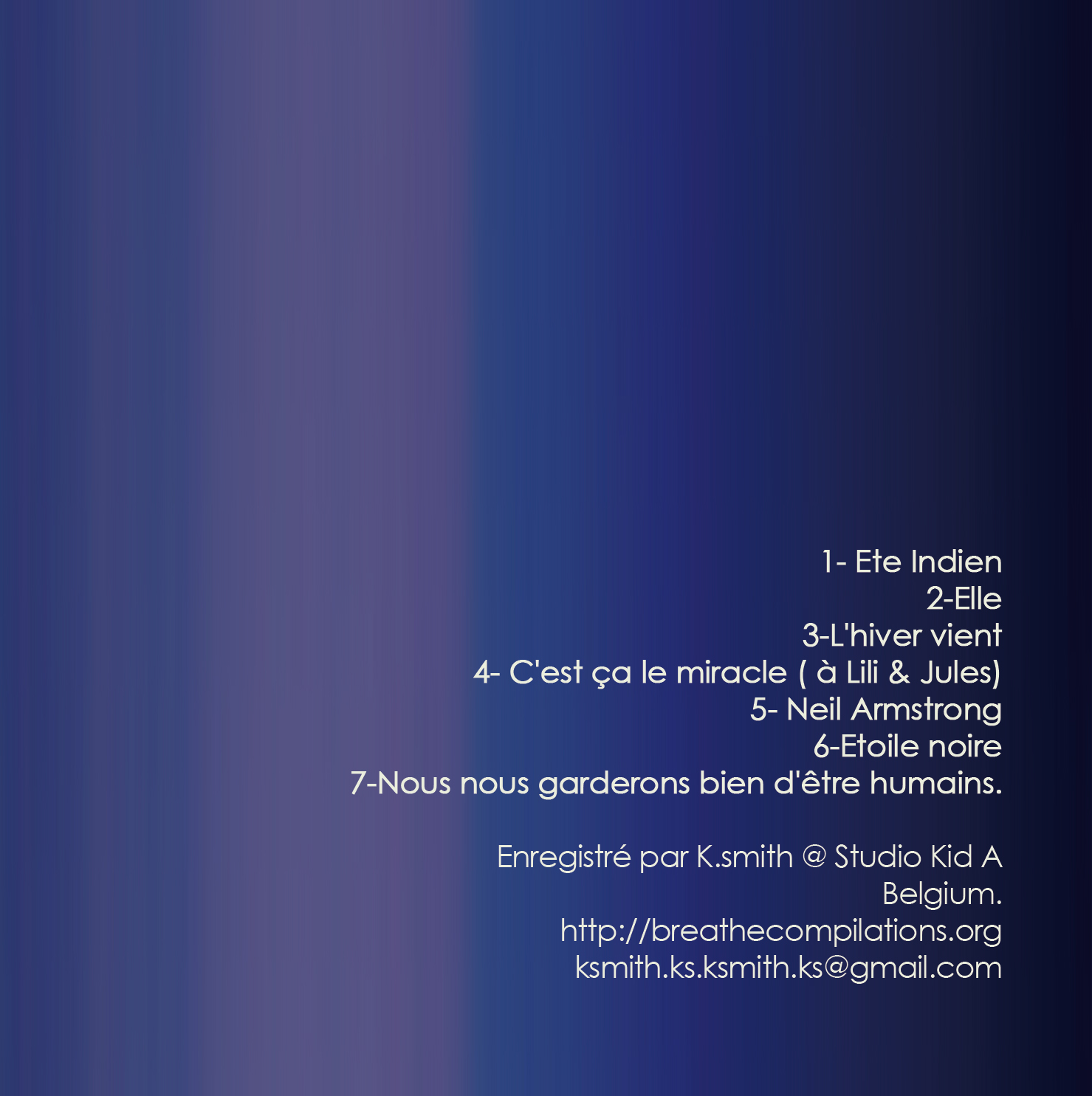 Album réalisé @Studio Kid A entre l'été indien, une naissance, des souvenirs et un monde qui devient fou.