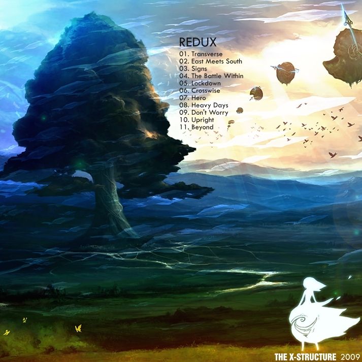 Released: 2009Album: 06ReduxRedux is a collection of previously unreleased tracks that were rediscovered in a remote APE warehouse in June 2009. In it we travel back to 2007 where another part of the mysterious origins of The X-Structure is revealed. On discovery many of the tracks were still incomplete but with the expert skill of The X-Structure the finishing touches were added to this chapter of their epic story.----------// Release DateJune 2009// External SourcesFront and Back Cover Art by Resona RailleCover designs by nightowl// LabelBushmen Records - http://netlabel.co.za/Release Number - bush06// LicenseLicensed under Creative Commons license: Attribution-Noncommercial-Share Alike 2.5 South Africa// Track listing01. Transverse02. East Meets South03. Signs04. The Battle Within05. Lockdown06. Crosswise07. Hero08. Heavy Days09. Don't Worry10. Upright11. Beyond