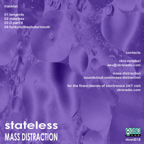 VKRS Netlabel is pleased to announce the release of Mass Distraction’s Stateless EP. A Journey of original electronic soundscapes and digital rhythms for your soul.