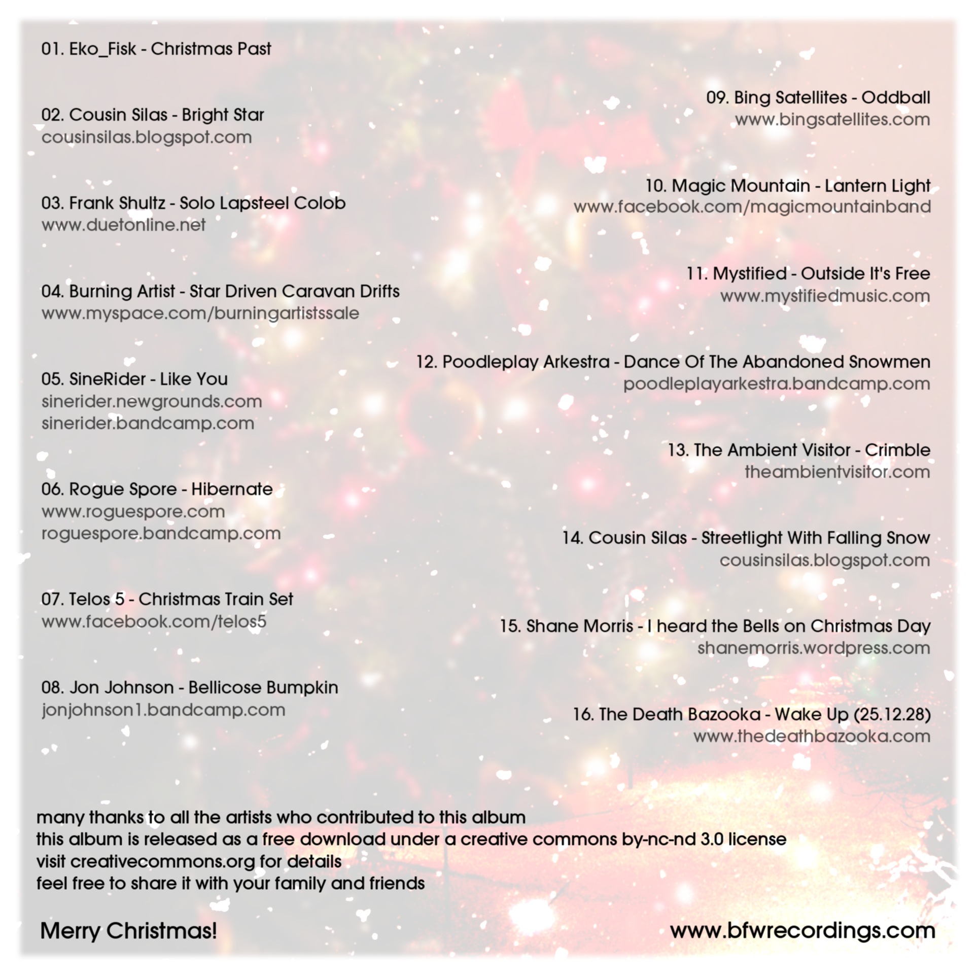 85 minutes of brand new festive loveliness - ambient, indie, electronica and much more - for you to enjoy over the holiday season and beyond.