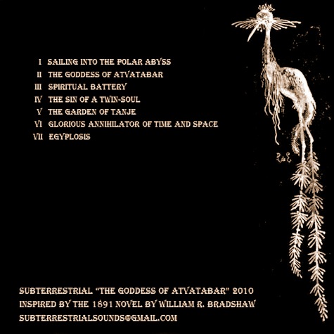 The debut album from this San Francisco Bay Area artist, The Goddess of Atvatabar is inspired by the 1891 hollow earth adventure novel by William R. Bradshaw and leans heavily on dark ambient, tribal ambient and middle eastern musical themes. The Goddess of Atvatabar is a self-released web album and is available as a free download in a zip file with high quality MP3s and covers.