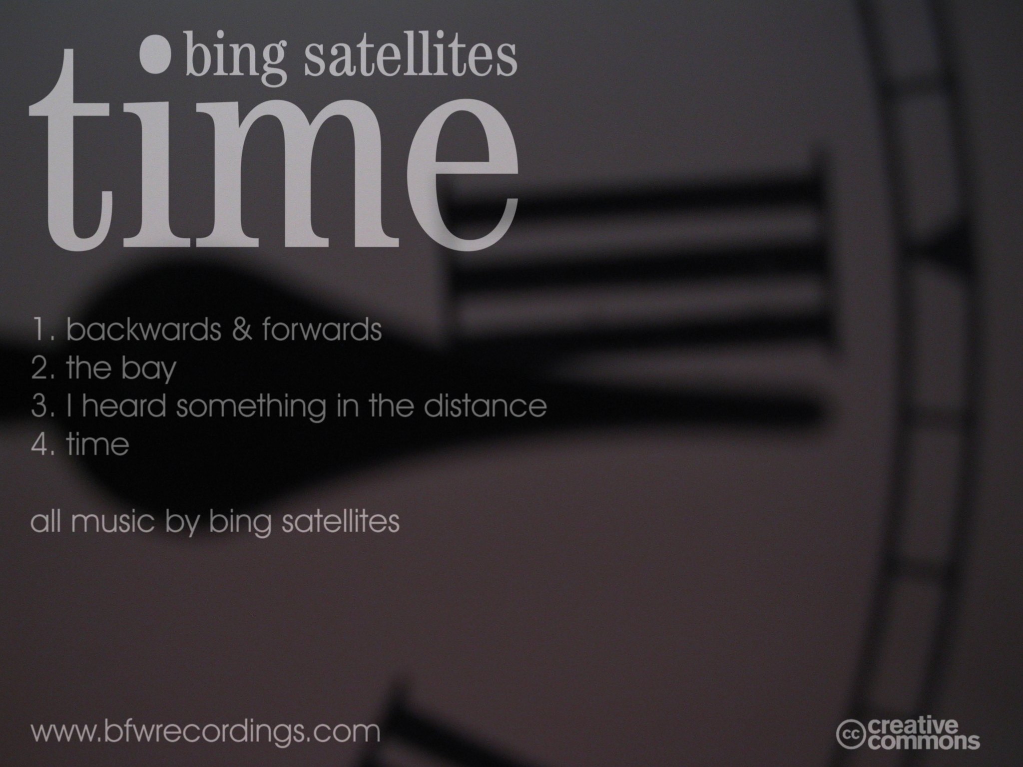 Bing Satellites returns with the fourth release in as many months. 'Time' is an ambient album but it is emotive and psycheldelic, touched by Bing's love of shoegaze and experimental music. The sounds on this album come from a wide variety of sources - synths, laptop, guitar, clapped ot old keyboards and objects lying around Bing's studio in Manchester.