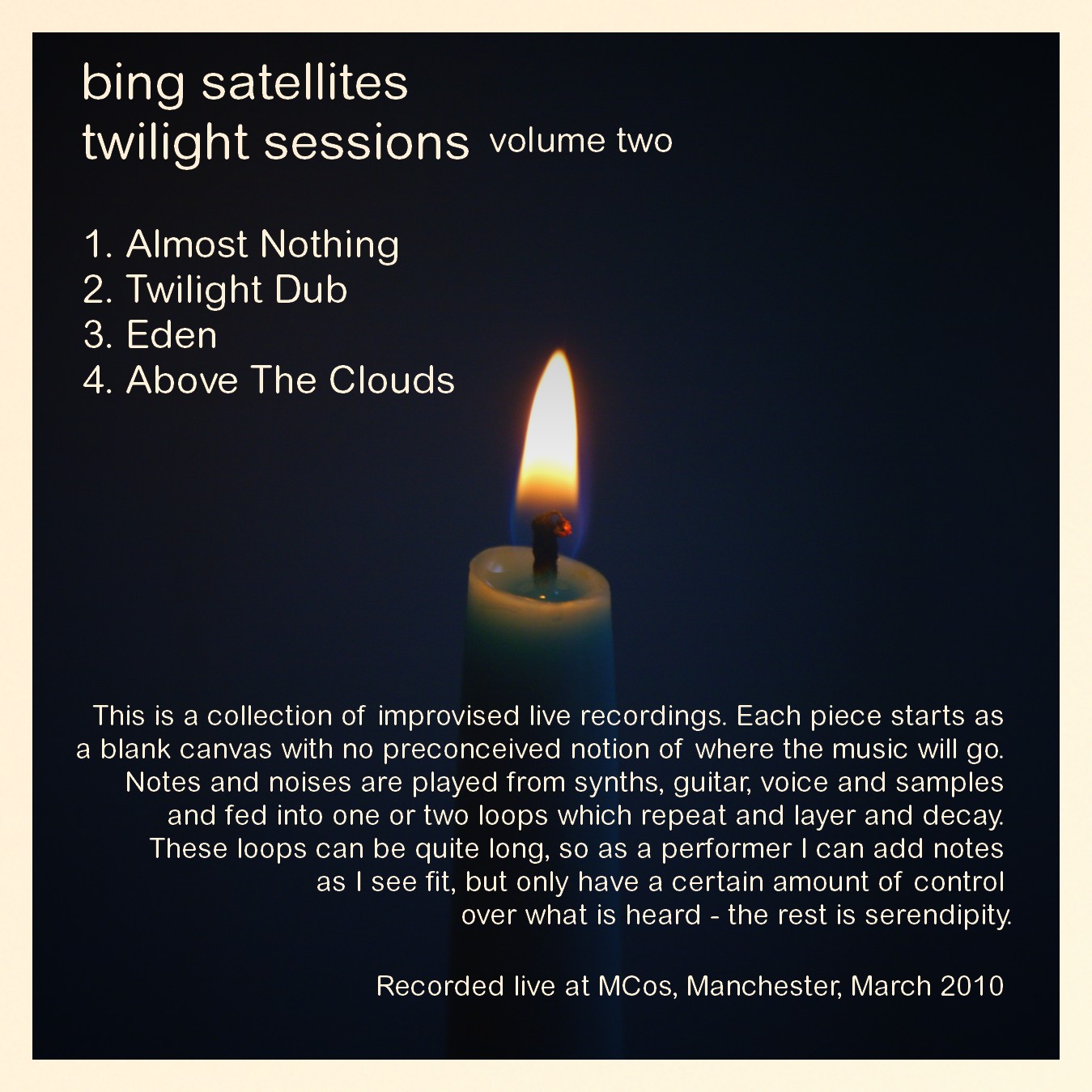 The second album in the Twilight Sessions series. Like the first, this is a collection of improvised live recordings from March 2010. In places, very ambient: long, drawn out pieces that evolve slowly, creating quite an emotive and evocative sound, but there is more rythym and a dub edge to this album. Each piece starts as a blank canvas with no preconceived notion of where the music will go. Notes and noises are played from synths, guitar, voice and samples and fed into one or two loops which repeat and layer and decay. These loops can be quite long, so as a performer I can add notes as I see fit, but only have a certain amount of control over what is heard - the rest is serendipity.