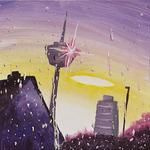 Theodor Steiner’s tracks were recorded during a jam session, which took place in a flat in Cologne (Germany) in April of the year 2017. The cover of the release shows the painting he made from the view he had along the way. Pretty close to the urban centre it seems. But unlikely, that he was driven by similar thoughts like those I’ve described above to start his improvisation. It’s more likely that it just happened. By the way: Theodor was performing with a wink. The second track ends with a kind of wake-up call, which bursts the soundtrack-like character of the music in an ironical way and quits the illusion of apparently continuous, just slowly changing soundstreams surprisingly.